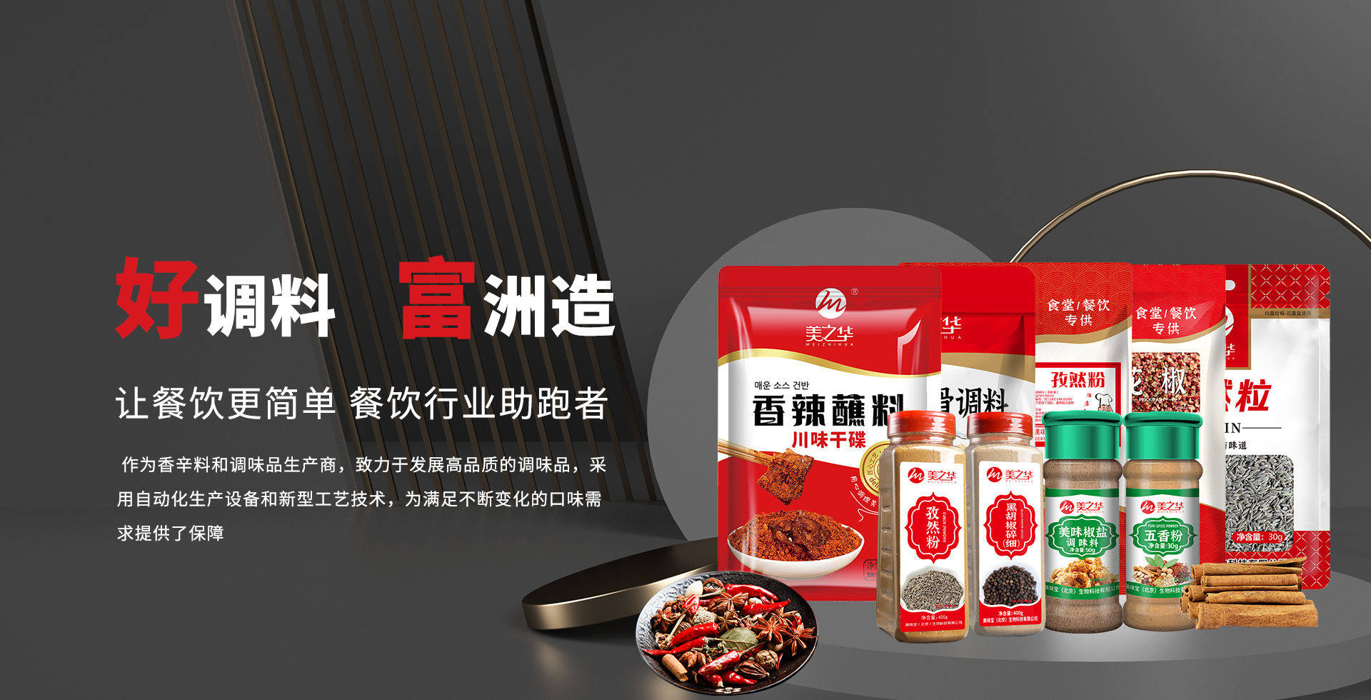 以香辛料粉、燒烤系列、復合調味醬系列、餐飲調味品代工等多個板塊滿足不同客戶需求。